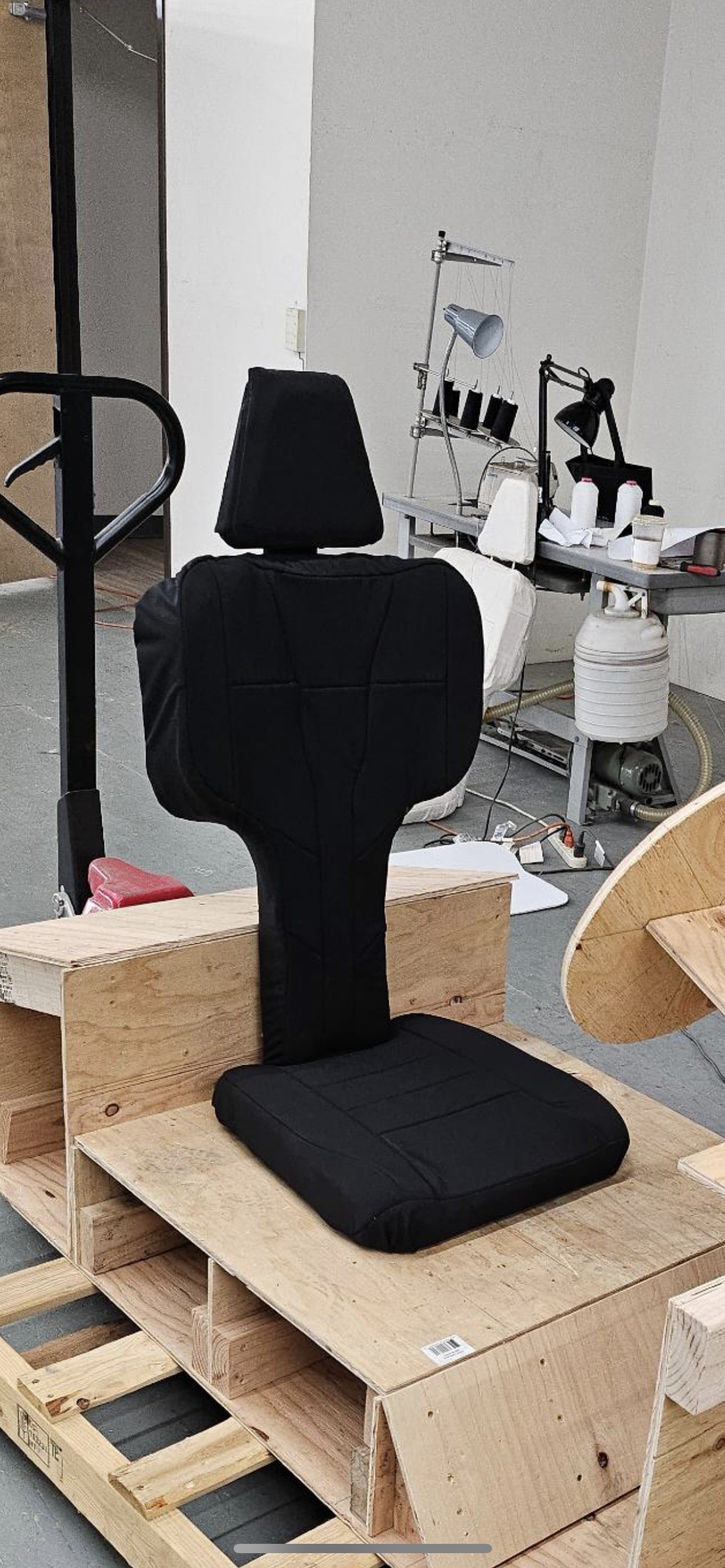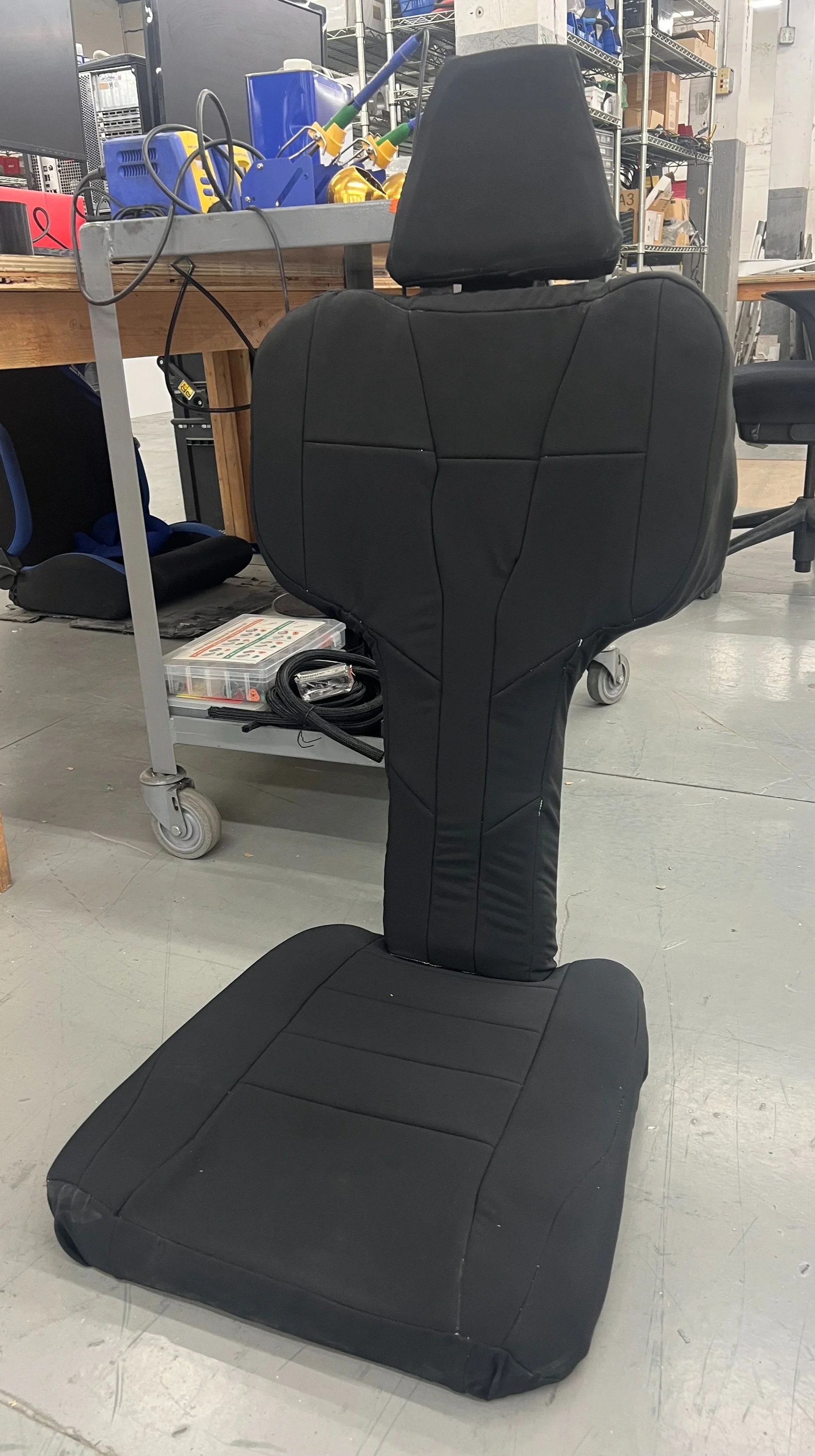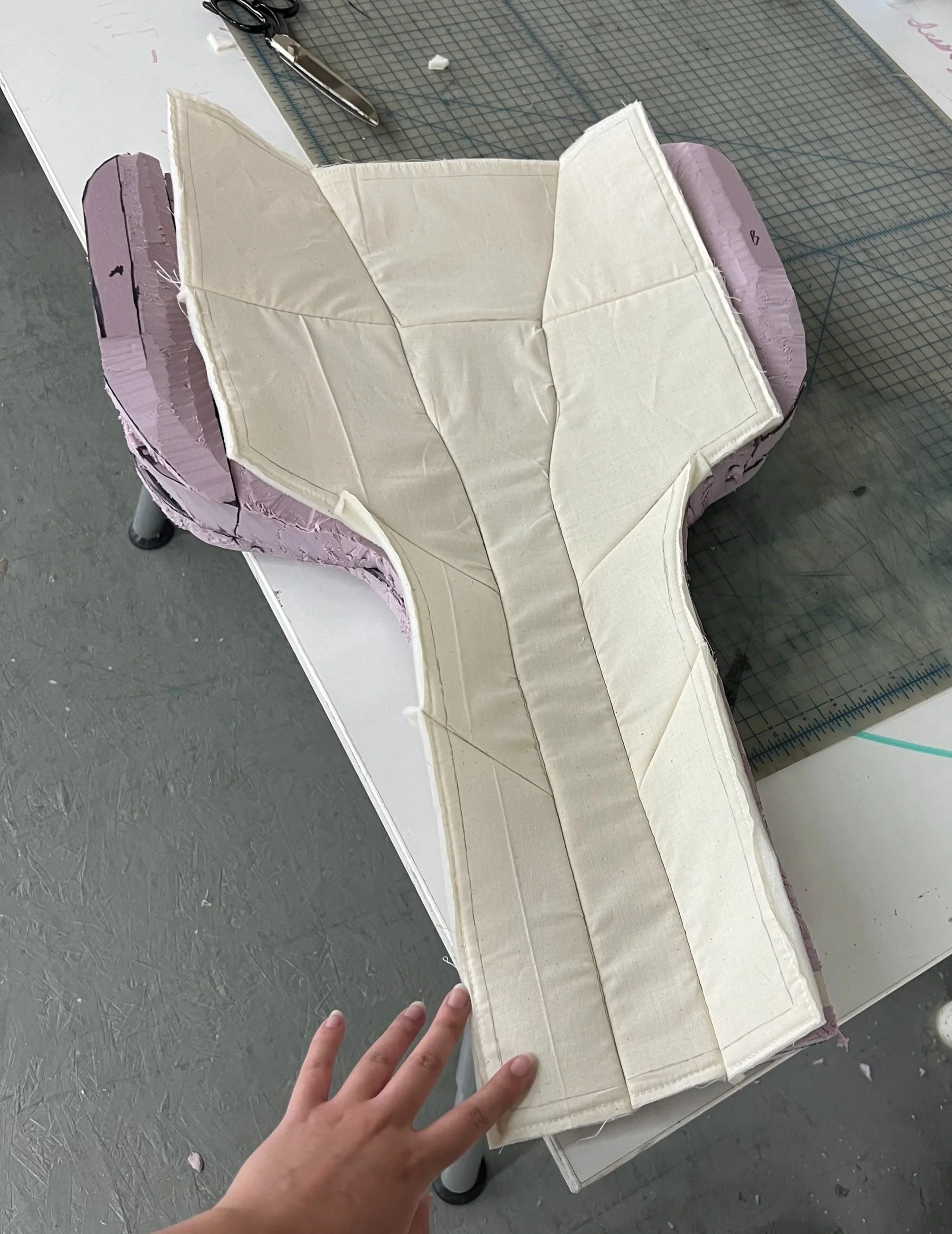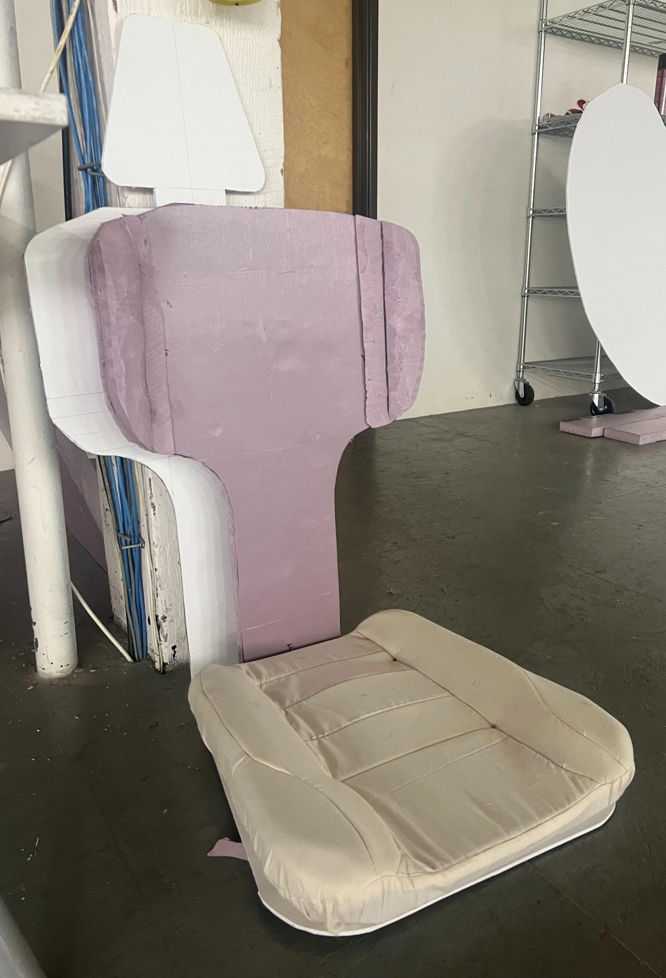 The first seat I was developing was made through quick modeling techniques with foam, scrim backing, and muslin fabric.