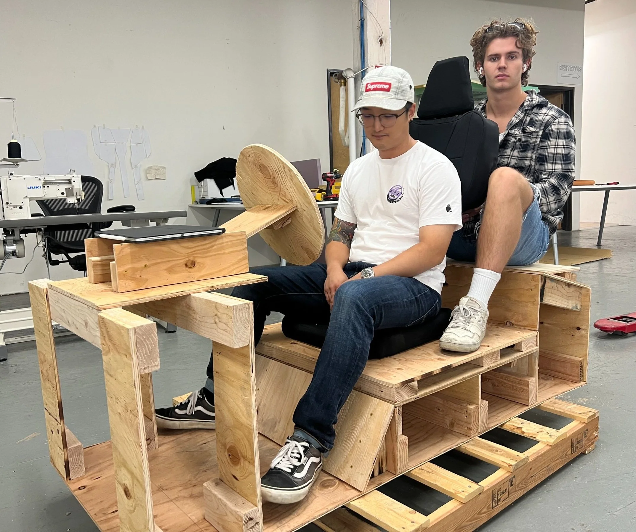 I tested various heights in the front and back seat. To easier test the spacing and seating I built a 1:1 floor plan of the vehicle out of plywood sheets and 2x4s.
