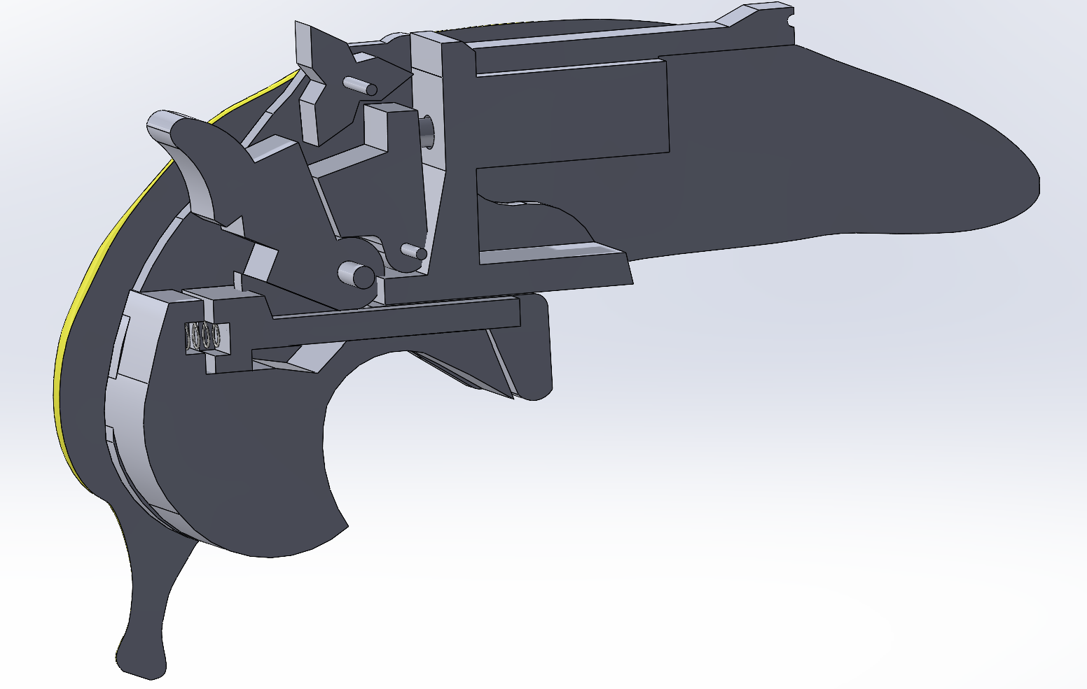 These are some pictures of what I had imaged for the color, material, and finish for the banana gun toy. The inside manufactured with clear acrylic and the outside housing created with semi matte yellow polyethylene. I produced these images with the Keyshot application.