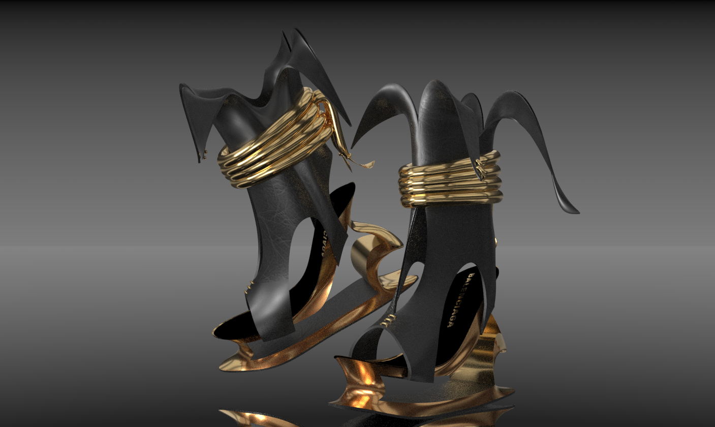 The Jester boots are inspired by the brand BALENCIAGA. The brand has many playful forms, and I wanted to create a pair of boots in line with the bold, fantastical pieces within the BALENCIAGA collection. I am not affiliated with BALENCIAGA, but am simply an enjoyer of their branding and style. Please take a look through the gallery below to get a closer look at the details modeled for these ankle boots!