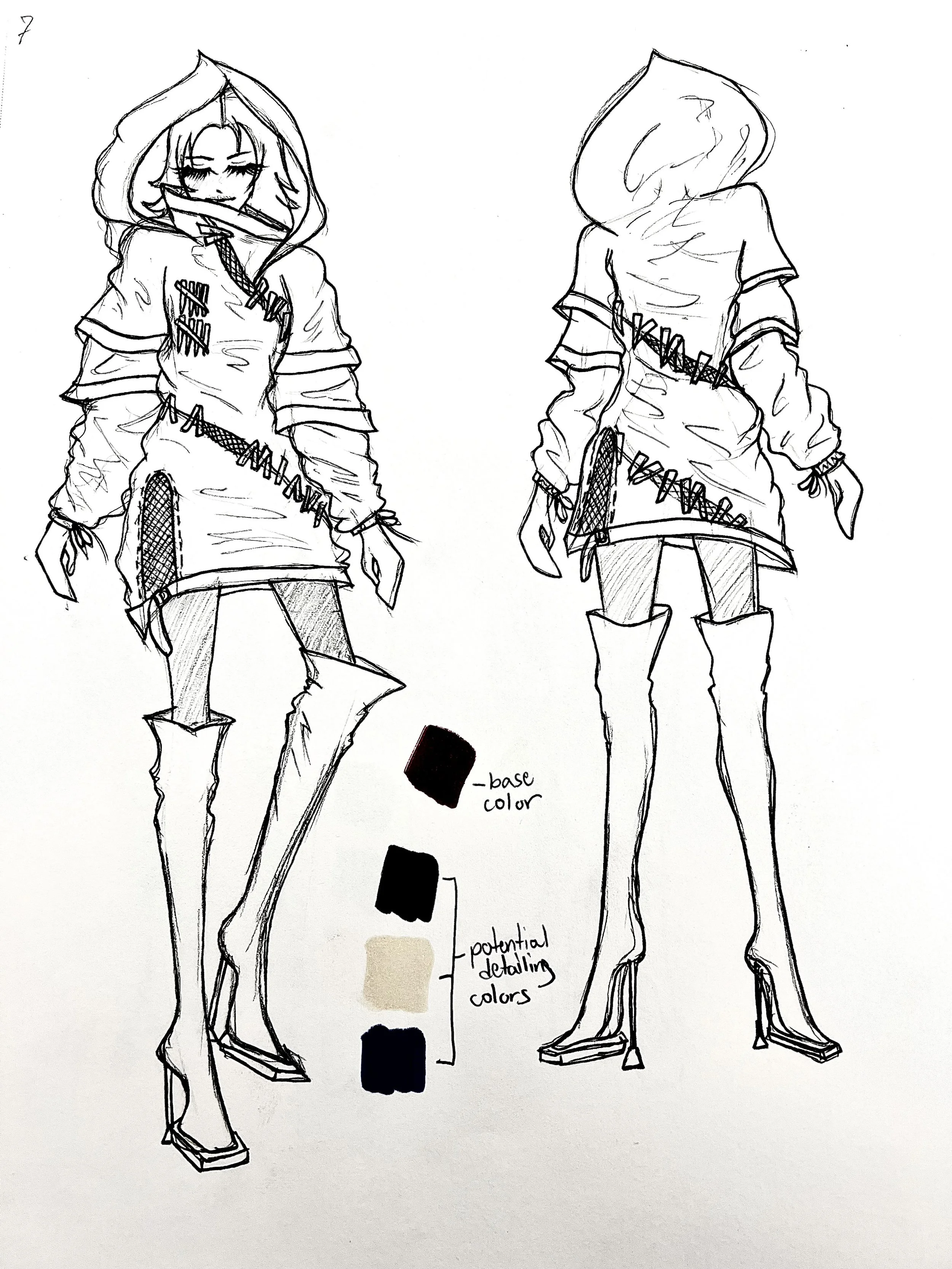 The following are a line of 8 croquis figure drawings that I designed and explored during a fashion course at Rhode Island School of Design.